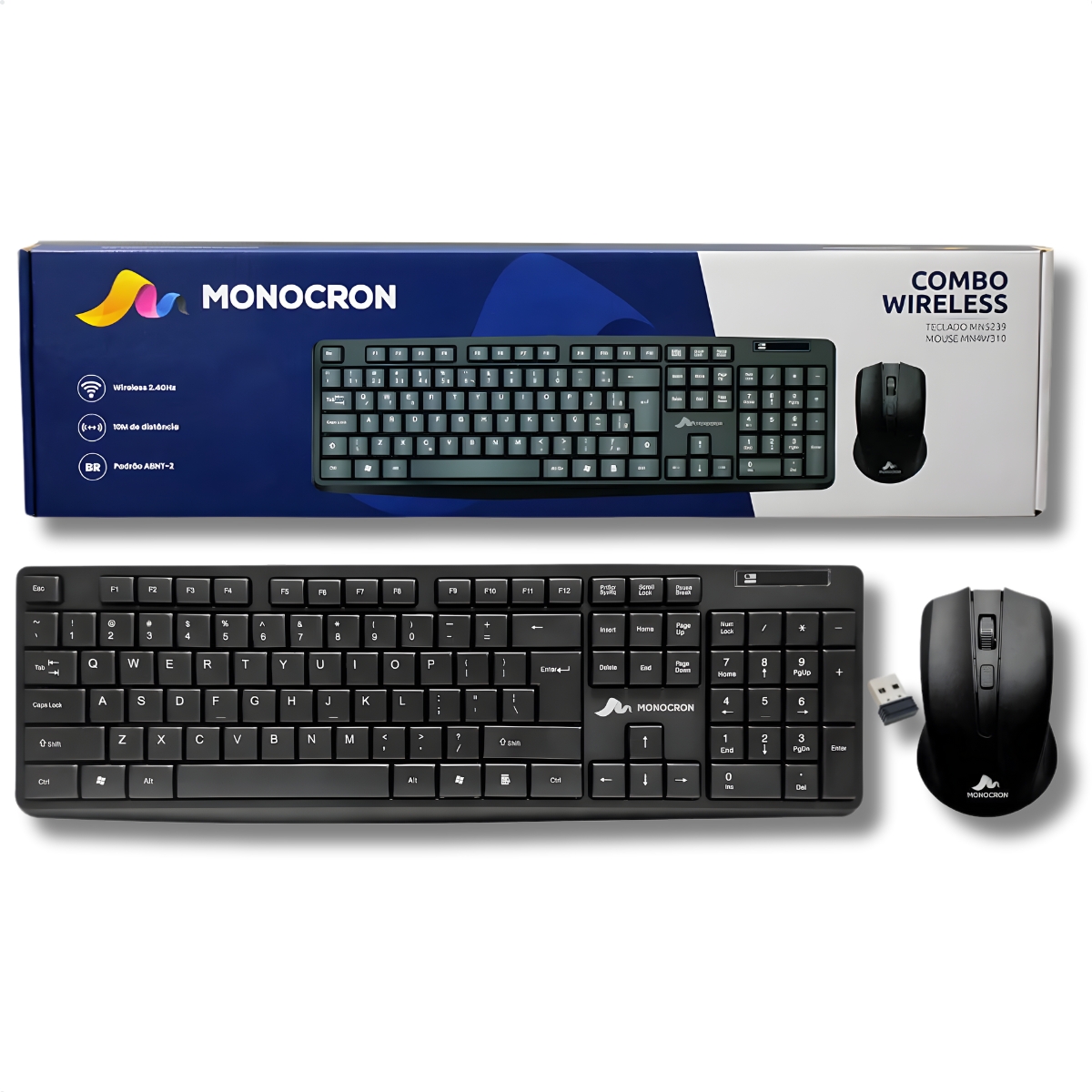 Combo 2X1 (Teclado + Mouse) Sem Fio, Monocron, Wireless, 2.4GHz, Preto - MN5239/MN4W310