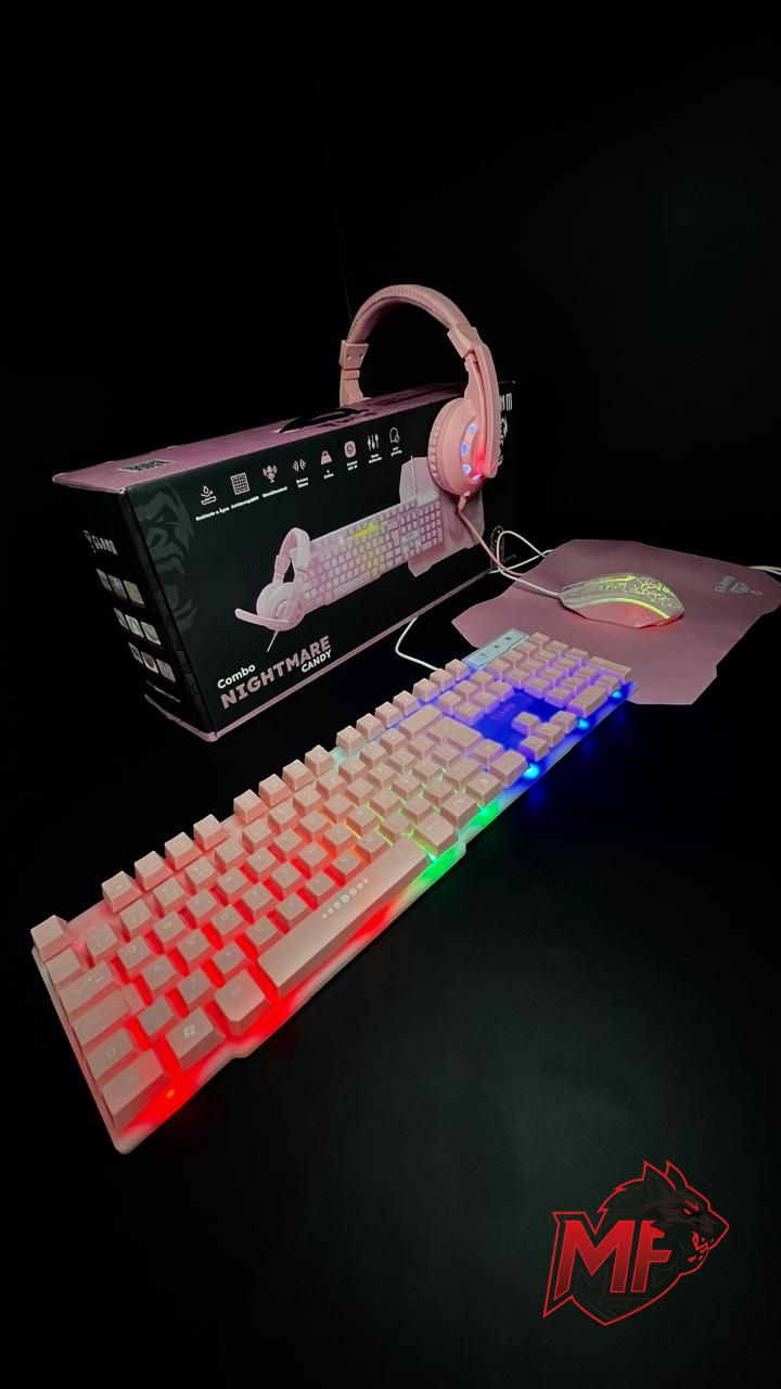 Kit 4-em-1: teclado + mouse + headset + mousepad — tudo incluso, sem você precisar comprar peças separadas.