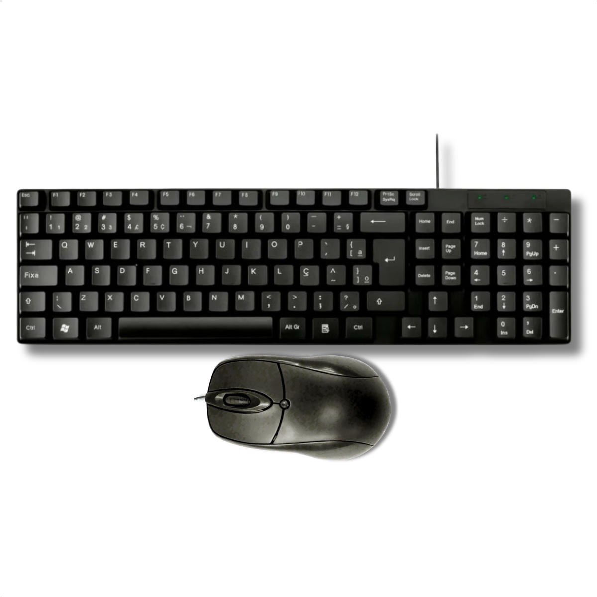 O teclado padrão ABNT2 conta com tecla “Ç” e layout brasileiro completo, ideal para uso em escritórios, escolas, ou em casa. Já o mouse óptico com fio possui sensor de alta precisão, garantindo movimentos suaves e controle exato em qualquer superfície.