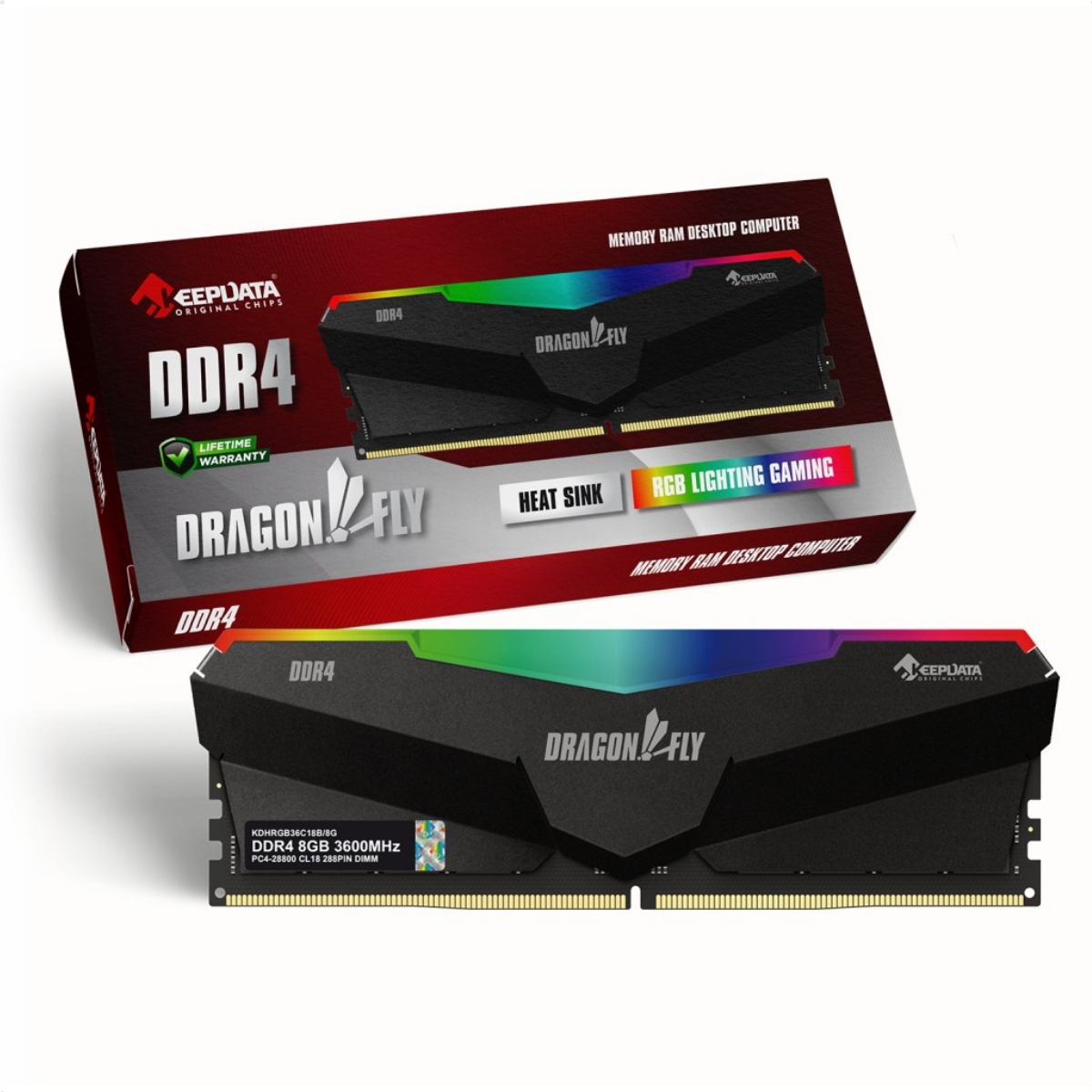 Memória RAM DDR4 Keepdata Dragonfly RGB 8GB, 3600MHz, CL18, Preto – Alto Desempenho e Visual Gamer