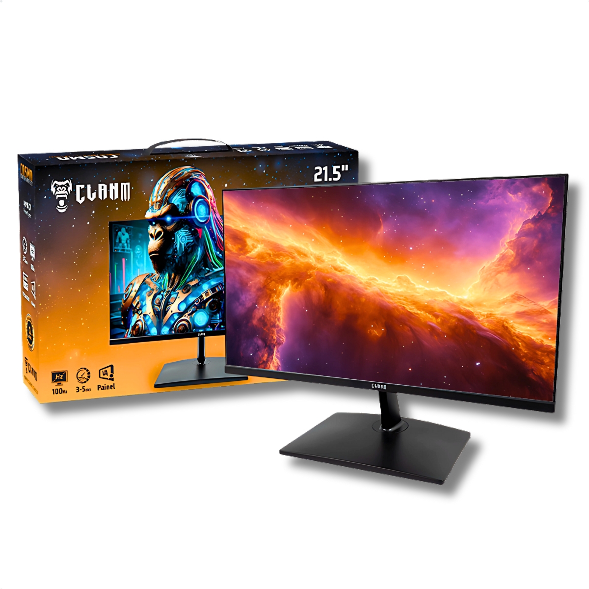Monitor Gamer 21.5" Full HD Clanm COSMO, 100Hz, 3ms, HDMI/VGA, Preto – Desempenho e Imersão para sua Jogada